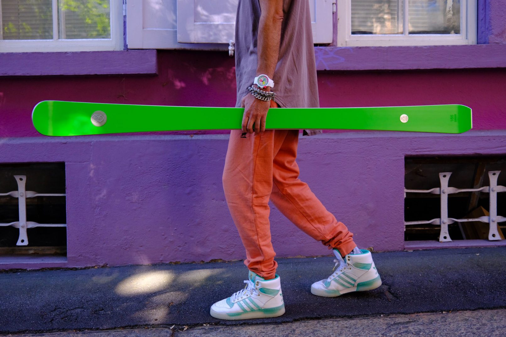 Je n‘ai pas de mèches blondes mais la Beach Attitude. Je carve sur la glace et dans la soupe. Je fais des virages serrés comme un ski de slalom mais je reste très stable à toutes vitesses. J‘aime quand tu tires ta ligne sur la carre. Tu verras, les autres seront GREEN de jalousie.